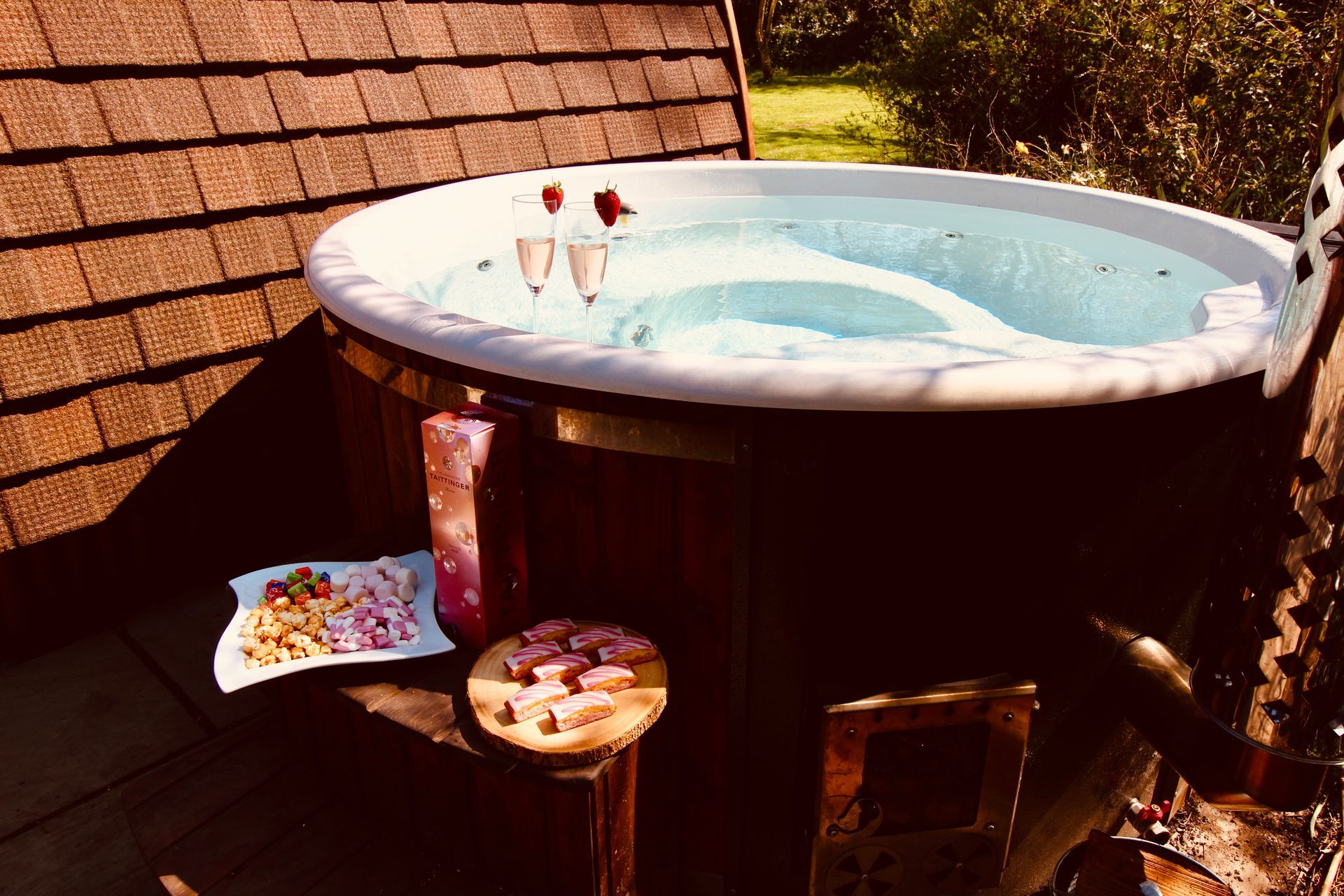 - Log Burning Hot Tubs complete with Smart TV under a wooden cover