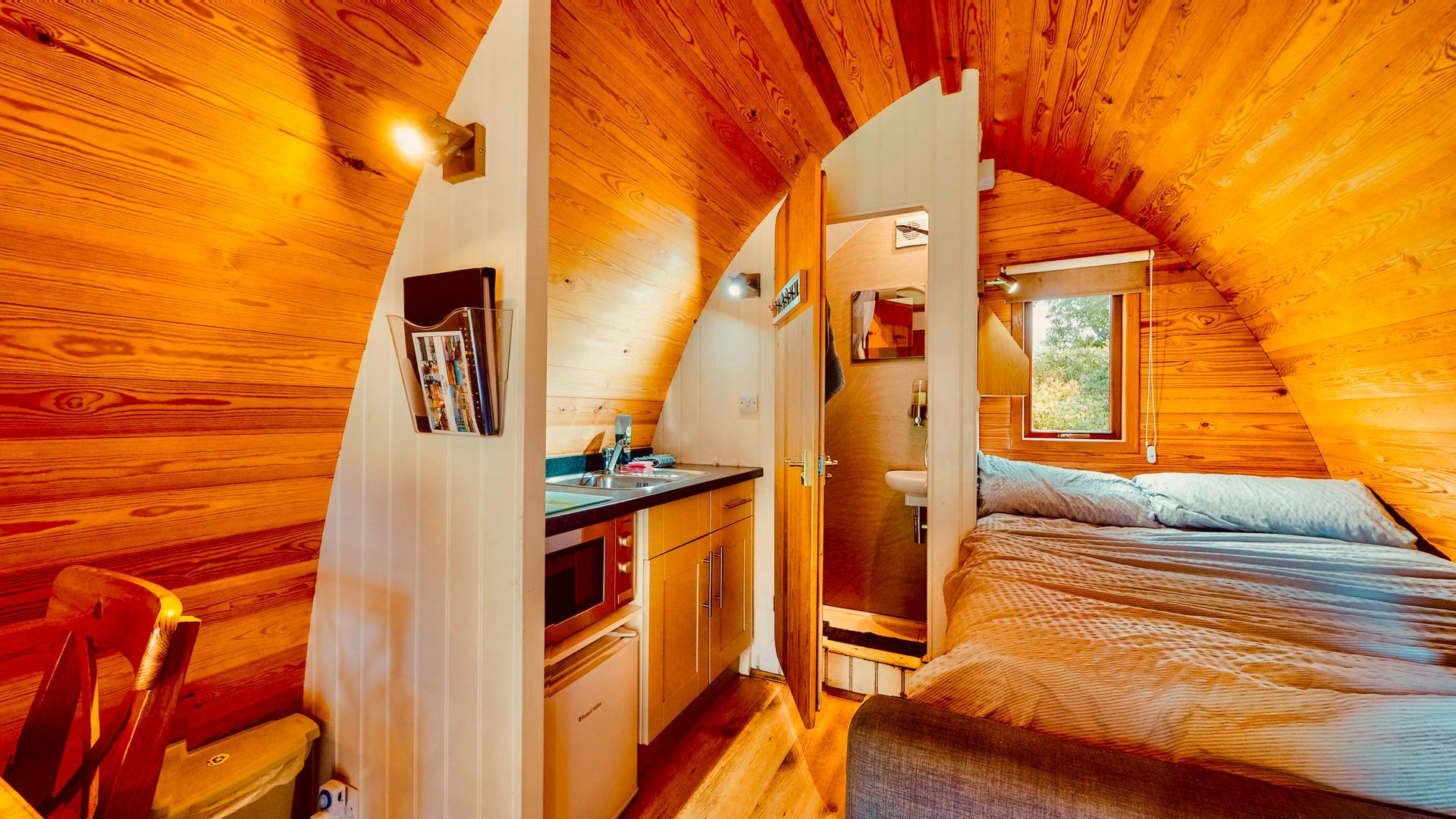 Five beautiful well-equipped pods, made from solid treated timber and insulated with sheep's wool, providing luxurious home comforts and making outdoor living that little bit more glamorous. The pods are ideal for two people, (although you can squeeze in some children on the sofa bed!).